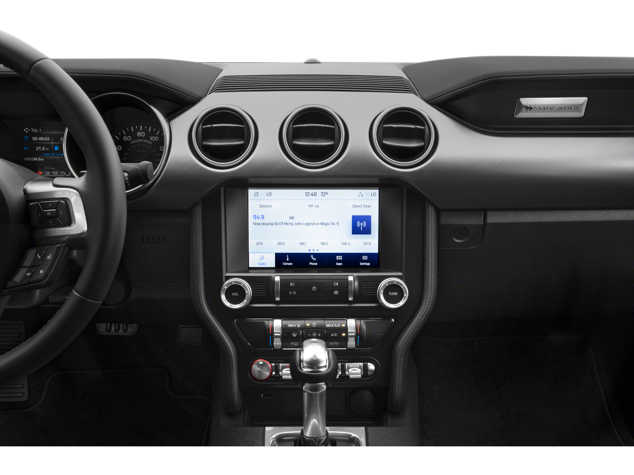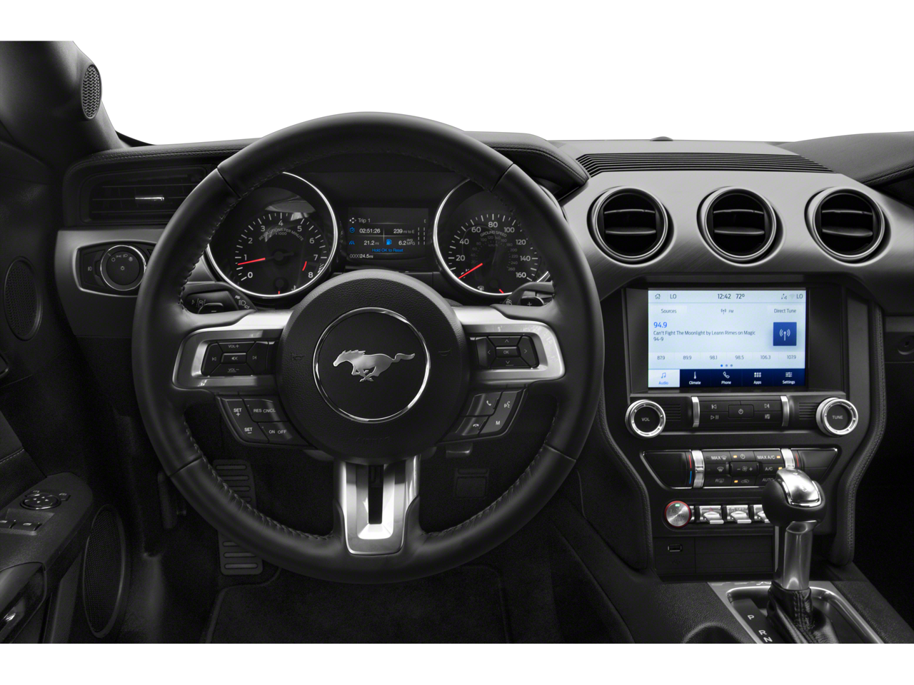 Elevating the driving experience, the Mustang GT Premium features a 12 LCD Digital Instrument Cluster with MyColor, allowing you to customize the display to your preferences. The Voice-Activated Touch-Screen Navigation System and B&O Sound System by Bang & Olufsen provide seamless connectivity and a premium audio experience. Comfort and convenience are further enhanced with the Heated Steering Wheel, Memory Driver Seat, Mirrors, and Ambient Lighting.